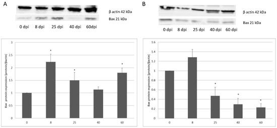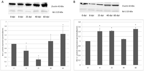 3.2. Changes in Apoptotic Protein Expression in the Small and Large Intestine of the Rat during H. diminuta Infection