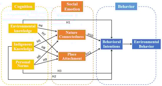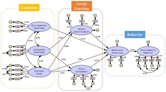 The findings indicate that personal norms have a more significant direct effect on behavioral intention than environmental knowledge, nature connectedness, and place attachment. The influence of personal norms on behavioral intention was mainly produced through a direct effect, although the mediating effect of emotion also played a partial role.