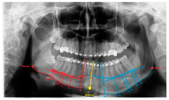 - Ongkosuwito, E.M.; Dieleman, M.M.; Kuijpers-Jagtman, A.M.; Mulder, P.G.; van Neck, J.W. Linear mandibular measurements: Comparison between orthopantomograms and lateral cephalograms. Cleft Palate Craniofac. J. 2009, 46, 147–153. [Google Scholar] [CrossRef] [PubMed]