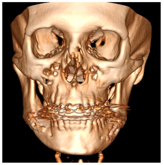 The usage of a 2D-panoramic radiograph is helpful. More important measurements nowadays are made on 3D-virtual planning models (Figure 5). 3D planning might improve surgeons’ insight and the scope of bone evaluation. Because of great improvements in surgical planning, not only 3D-CT/LDCT evaluation is helpful. The usage of 3D stereolithographic models is an alternative method, where surgical cuts and plate bending might be quite easily made before surgery to ensure that the selected surgical approach is the most adequate of all. In cases of asymmetry visualized in patients in face view after orthognathic, surgical, and orthodontic treatment, some detailed total mandibular symmetry correction protocols are needed. Direct 3D-LDCT planning based on the used anatomical reference points presented herein is helpful in restoring facial balance and mandibular symmetry (Figure 6 and Figure 7). The authors’ future studies will focus on the 3D evaluation of facial skeleton, soft tissue changes in CT/MR, and lateral profile alterations; because of that, any other data are excluded from this study.