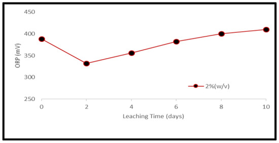 Evolution of ORP during bacterial leaching of Ta capacitor samples at pulp density 2% (w/v).