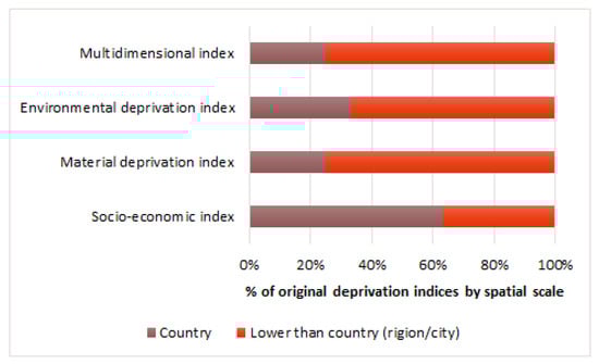- Benmarhnia, T.; Laurian, L.; Deguen, S. Measuring spatial environmental deprivation: A new index and its application in France. Environ. Justice 2013, 6, 48–55. [Google Scholar] [CrossRef]
