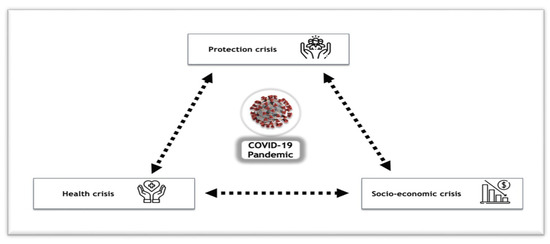 In this article, we adopt the lens of social vulnerability as a conceptual framework to help interpret the impact of the pandemic and consequential lockdown. The notion in this framework is that a ‘compounded crisis’, which encompasses a health crisis, a protection crisis, and a socio-economic crisis [14], arises from existing vulnerabilities reinforcing each other and is amplified during a pandemic and subsequent lockdown, creating a detrimental cycle (Figure 1).