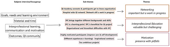 Three themes emerged from the analysis of both the interviews and focus group discussions (see Figure 1): “interprofessional education”, “networking” and “motivation: presence with pitfalls”. The themes are described below, illustrated with quotations of the participants.