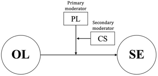 A moderated moderating model. OL, observational learning; SE, self-efficacy; PL, performance level; CS, competition condition.