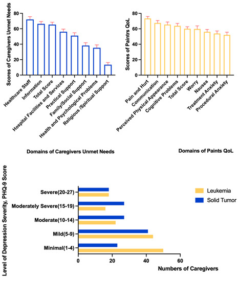 Childhood cancer is a global public health issue, and represents the second leading cause of death for children and adolescents and the sixth leading cause of the total cancer burden [1,2]. China shares a large proportion of the global burden of childhood cancer [3]. With growth in the incidence of childhood cancer, a decline in childhood cancer mortality, and relatively high survival rates in childhood cancer [4,5], China is facing an increasingly heavy disease burden. The COVID-19 pandemic has exacerbated this situation, as only one caregiver is permitted to accompany hospitalized patients. Confronted with this situation, family caregivers of childhood cancer patients who receive inpatient treatment have more unmet needs than they did at any previous juncture, potentially eroding the quality of life (QoL) of these patients. The purpose of this study was to assess the relationship between the unmet needs of Chinese family caregivers and the QoL of childhood cancer patients in receipt of inpatient treatment.