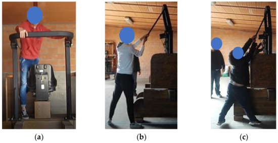 Regarding the raising task on the enhanced FROPS, the unsafe behaviors described in Section 2.2 did not occur, since the handling movement was carried out by all the participants with both feet on the ground, allowing them to firmly hold the rod connected to the FROPS (Figure 5c). Most participants identified the rod as the device to be used for lowering and raising the FROPS without requiring any explanation for its correct use. Five of them attempted some trials before understanding how to use it. Table 7 shows the main results.