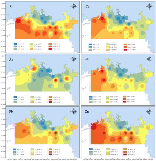 APA StyleYang, C., Wang, L., Liu, Y., Shan, B., & Sun, D. (2022). Spatial Distribution, Potential Risks and Source Identification of Heavy Metals in the Coastal Sediments of the Northern Beibu Gulf, South China Sea. International Journal of Environmental Research and Public Health, 19(16), 10205. https://doi.org/10.3390/ijerph191610205