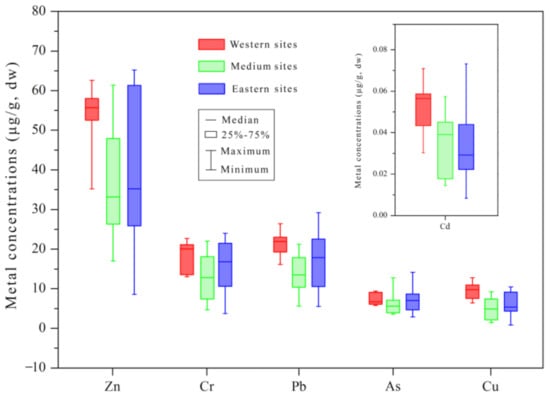 - Liu, S.; Shi, X.; Liu, Y.; Zhu, Z.; Yang, G.; Zhu, A.; Gao, J. Concentration distribution and assessment of heavy metals in sediments of mud area from inner continental shelf of the East China Sea. Environ. Earth Sci. 2011, 64, 567–579. [Google Scholar] [CrossRef]