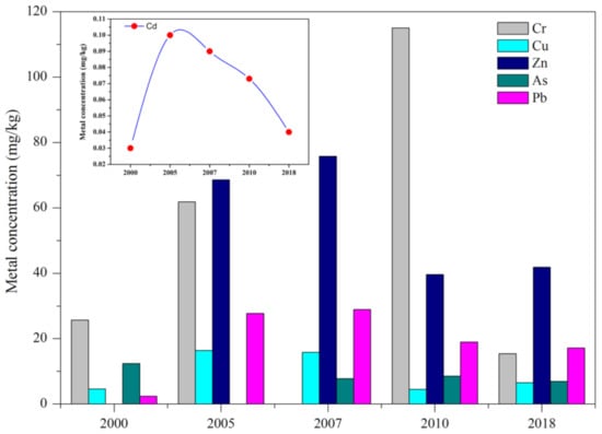 - Xia, P.; Meng, X.; Yin, P.; Cao, Z.; Wang, X. Eighty-year sedimentary record of heavy metal inputs in the intertidal sediments from the Nanliu River estuary, Beibu Gulf of South China Sea. Environ. Pollut. 2011, 159, 92–99. [Google Scholar] [CrossRef] [PubMed]
