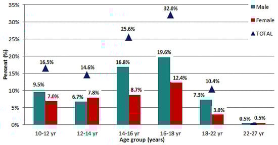 Table 3 highlights the age and gender distribution of the surveyed population. The most important comments that can be made based on Table 3 data are that the largest part of the urban respondents fall in the interval between the ages of 14 and 18; on the other hand, the rural population is concentrated between the ages of 10 to 14 years. These observations are consistent with the general trend occurring at a national level. In countryside regions of Romania, we found only primary schools with less equipment (e.g., IT, laboratories) and that were overall inadequate for higher education, children generally study there up to the age of 14 when some of them go on to enroll in high school in the nearby cities.