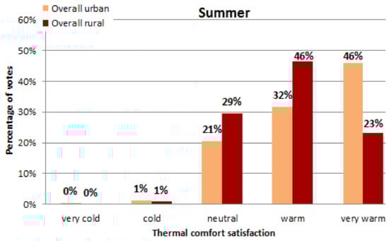 Comparison of thermal perception of the survey respondents from urban and rural environments.