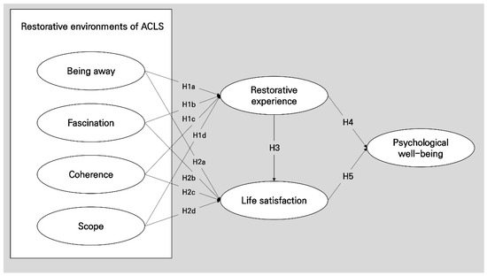 Based on previous studies, we assumed that the perception of restorative environments and restorative experiences in ACLS may have a positive effect on residents’ life satisfaction. Therefore, we propose the following hypotheses.