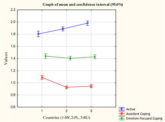 Comparatively, the students from Poland and Kaliningrad obtained higher scores in active coping, planning, seeking instrumental support, and significantly less often re-sorted to denial and ignoring the problem and behavioral withdrawal (“helplessness”, “submission”, “abandonment of effort”). We found the most interesting results for the humor and religion strategies. Humor was the only exception among all of the avoidance and support-seeking/emotion-oriented strategies, which was significantly more frequently used by the Russian students. However, the greatest difference was present in the reliance on religion among all of the strategies, favoring the Polish and Belarusian students.