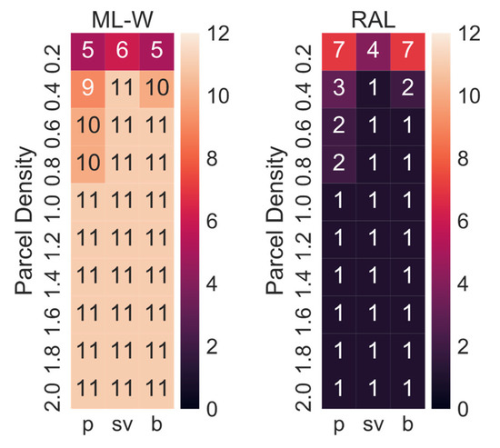 Numbers of times RAL and ML-W were the best options in the sensitivity analysis.