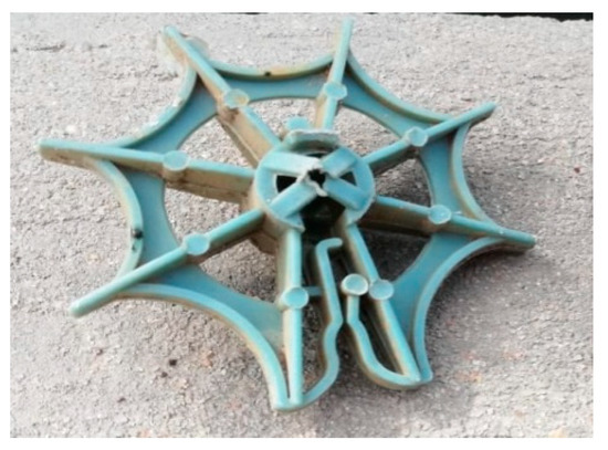 The media used in this study is a star-shaped plastic media as shown in Figure 2. It was placed in galvanized steel mesh cages of dimensions 1.0 m length, 0.26 m height, and 0.4 m width as shown in Figure 3. Then, it was installed in the stream according to the experimental program. The biofilter performance depends upon the type of media used and its characteristics, such as specific surface area, void ratio, surface roughness, geometry, and configuration. The media used (star-shaped) has a high specific surface area of about 176 m2/m3 and void ratio of about 87%.