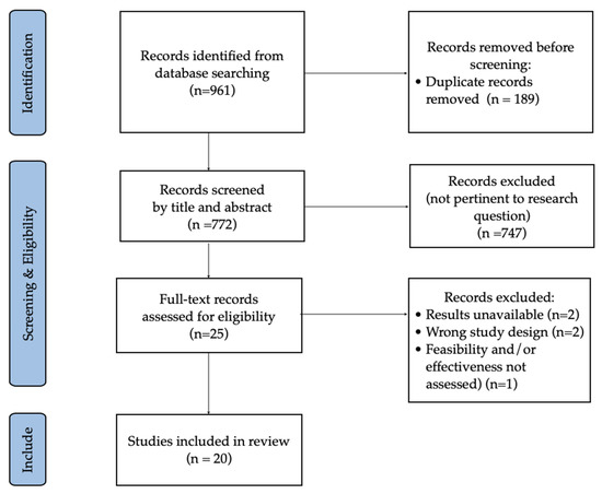 The following supporting information can be downloaded at: https://www.mdpi.com/article/10.3390/ijerph191610325/s1, Supplementary Table S1: Search strategies used for each database; Supplementary Table S2: Quality Assessment of Randomized Controlled Trials; Supplementary Table S3: Quality Assessment of Observational Studies; Supplementary Table S4: Quality Assessment of Feasibility and Pilot Studies. References [22,23,24,25,26,27,28,29,30,31,32,33,34,35,36,37,38,39,40,41] are cited in the Supplementary Materials.