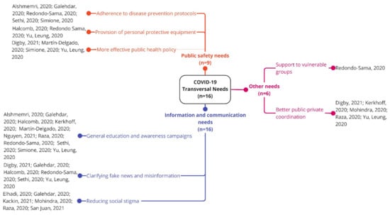 Transversal needs during the first year of the COVID-19 pandemic [5,13,24,45,47,48,52,54,57,60,62,68,70,71,72,77].