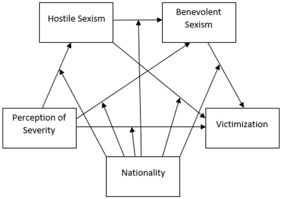 Nationality of victims will modulate the relationship between the Perception of severity of violent behaviour and the frequency of Victimization, modifying the mediatory effects caused by hostile sexism and benevolent sexism.