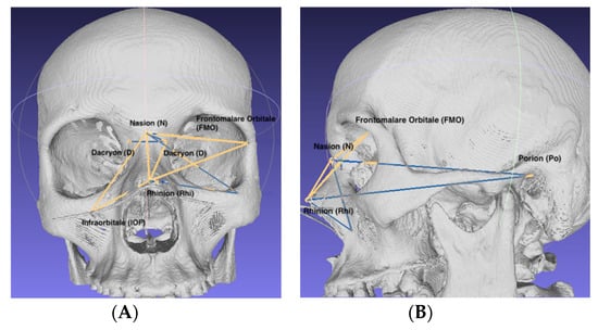 - Przygocka, A.; Podgórski, M.; Jędrzejewski, K.; Topol, M.; Polguj, M. The location of the infraorbital foramen in human skulls, to be used as new anthropometric landmarks as a useful method for maxillofacial surgery. Morphol. Folia 2012, 71, 198–204. [Google Scholar]
