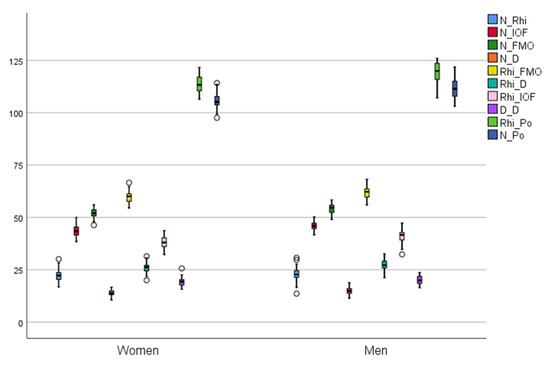 | Rhi–IOF | 38.08 ± 2.68 (32.29–43.68) | 40.93 ± 3.13 (32.34–47.24) | 39.36 ± 3.21 (32.29–47.24) | 0.000 | 1.70 | 4.01 |