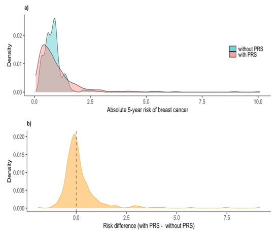 - Mavaddat, N.; Pharoah, P.D.P.; Michailidou, K.; Tyrer, J.; Brook, M.N.; Bolla, M.K.; Wang, Q.; Dennis, J.; Dunning, A.M.; Shah, M.; et al. Prediction of breast cancer risk based on profiling with common genetic variants. J. Natl. Cancer Inst 2015, 107, djv036. [Google Scholar] [CrossRef]