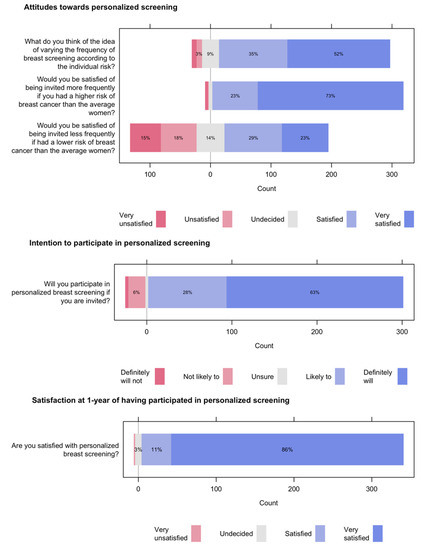 - Ghanouni, A.; Sanderson, S.C.; Pashayan, N.; Renzi, C.; von Wagner, C.; Waller, J. Attitudes towards risk-stratified breast cancer screening among women in England: A cross-sectional survey. J. Med. Screen 2020, 27, 138–145. [Google Scholar] [CrossRef] [PubMed] [Green Version]