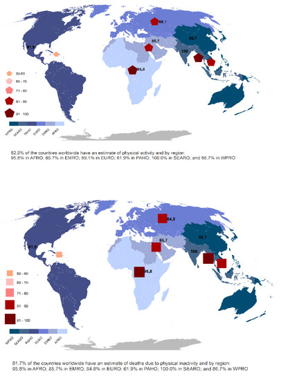 Status of global surveillance of PA among country-specific populations. Much has been accomplished over the past two decades regarding global efforts to measure physical activity prevalence and the impact of physical inactivity on health outcomes and mortality. Most of the current updates have been reported in The Lancet’s Global Health Physical Activity Series (LPAS 1, 2, and 3) in 2012, 2016, and 2021 [21,22,23,24,25,26,27,28,29]. A broader and more in-depth overview of the prevalence of physical activity worldwide is available through the Global Observatory for Physical Activity (GoPA!), and the release of their recent 2nd edition Global Physical Activity Almanac (Figure 1) [30].