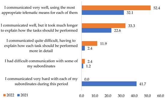 - An open dialog highlights the organizational culture of each company. It visualizes the care of each one towards the image and the conversation with the stakeholders. The employees and external environment are also considered. Looking over the difficult times that companies experience, including the pandemic, the quality of communication between the management and the employees is much better. It was observed that after March 2022, the connections worsened (the approach was very difficult, including moments when the workers sustained that they didn’t understand their tasks. The effort made by the leadership to optimize the working media strengthens the bilateral engagement in the companies [52].