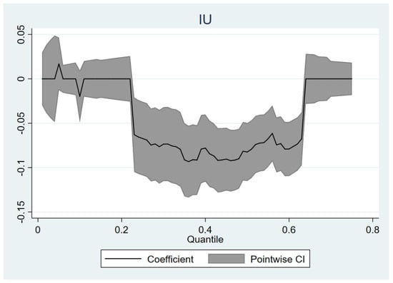 Quantile regression coefficient plot of IU.