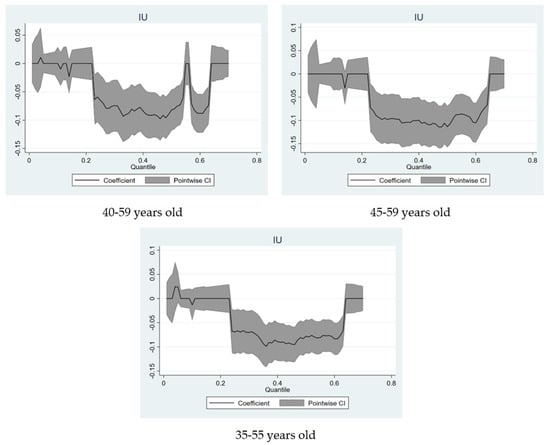 Quantile regression coefficients of IU under different age samples.