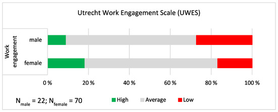 Research has shown that it is easier for committed and dedicated employees who consider their work to be meaningful to cope with adversity [19]. Work engagement and its positive effects can also be reflected in private life [18,20]. According to Hakanen [18], women experience work engagement slightly more often than men, and the elderly more often than young people. A later study also found that work engagement was higher in female than in male teachers [21]. The connection between work engagement and stress is interesting, since there is evidence that female teachers have higher stress than male teachers, while male teachers’ job satisfaction is higher than that of their female colleagues [22,23].