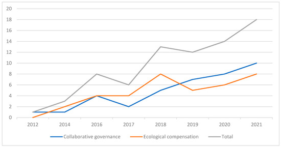 Figure 3 below shows the statistics based on the collective agreements. Since 2012, cooperation on ecological collaborative governance has appeared in the Yangtze River Delta. The number of agreements on ecological collaborative governance, and ecological compensation in the agreement, is increasing. There is also a growing emphasis on the importance of synergy between regions. From 1 agreement in 2012 to 20 in 2021, it can be seen that it is difficult to effectively promote ecological governance by relying on a single government at present. It is necessary to rely on cooperation and coordination between different departments in different regions to further promote the process of ecological green integration.