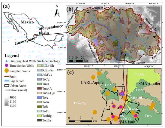 - Knappett, P.S.; Li, Y.; Hernandez, H.; Rodriguez, R.; Aviles, M.; Deng, C.; Piña, V.; Giardino, J.R.; Mahlknecht, J.; Datta, S. Changing recharge pathways within an intensively pumped aquifer with high fluoride concentrations in Central Mexico. Sci. Total Environ. 2018, 622, 1029–1045. [Google Scholar] [CrossRef] [PubMed]