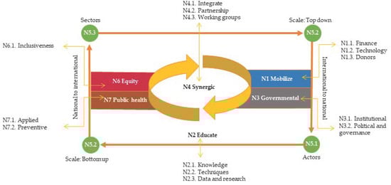 The LDPCs, including Gambia, Nepal, the Solomon Islands, and Guinea Bissau, have urged the capacity building of the actors (N5.1) at different scales. This includes local to city level support and from provincial to subnational, national level, and international level (N1.3) assistance. These scales are helpful in dividing responsibilities for the actors at different levels.