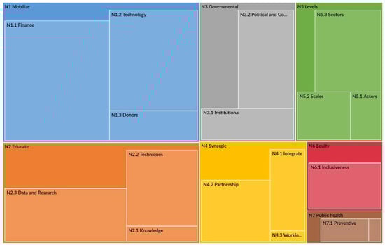 Interestingly, public health is the least coded category among all the needs categories. It shows fewer coding references related to health in their NDC submissions. Is it fair to consider health the least important component to mention in NDCs in the climate change scenario? It might be the most desperately needed category worth mentioning in NDCs, with synergic needs such as climate finance and technology; however, this study objectively visualizes the hierarchy of need strands according to the number of references/codes available in the NDCs. Another critical viewpoint is that the countries that are requiring assistance in capacity-building need assessment due to a lack of technical expertise, so on what basis are they requiring climate funds if they do not have the expertise to assess their needs or to utilize the required funds for the purpose they are looking for?