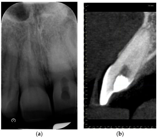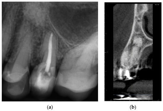 Nonvisible root canal system on (a) X-ray and (b) CBCT images (tooth 24).