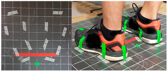 | Ground reaction force (GRF) in three directions [N]: ) ) ) | Force plate system linked to a signal conditioner and digitizer (FP9090-15-1000; Analog and Digital Amplifier AM6800; resulting resolution 0.5 N and 125 ms in time; Overall maximum error ≤ 6 N *; Bertec Corporation, Columbus, OH, USA) |