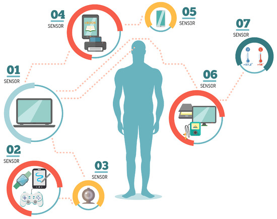 People have an ever-increasing life expectancy. Older adults want to be as independent as possible. However, the lack of elderly population monitoring is a major problem, especially for those lacking consistent attention from family members, caregivers, or a health center. The situation can get complicated, even leading to the death of the person [4]. Older people acquire certain routines in their daily lives, which allows a sensor network to “learn” some activities depending on the specific day or time. In this way, the network is capable of managing the behavioral patterns observed in the user, optimizing their correct interpretation through the information obtained by the sensors installed at home [5]. Undoubtedly, sensors play a major role in the prompt detection of behaviors related to motor or cognitive problems.