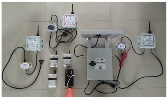Wireless network with set of radio frequency nodes, coordinator node, and protective plastic coatings. Radio frequency node: country of origin: Mexico; brand: TTR; model: Node RF, µUSB polarization: 5 V Vcc at 100 mA; polarization RJ-11 RS-485 port: 5–12 V Vcc at 100 mA; operating frequency: UHF-2.4 GHz; connection port: RS-485, USB; material: ABS plastic; dimensions: 109.5 × 70 × 38 mm; white color. Radio frequency sensor/router: country of origin: Mexico; brand: TTR; model: Node RF; RS-485 port polarization: 5–12 V Vdc at 100 mA; end devices: 100; nodes in the network: 100; jumping capacity: 15; operating frequency: UHF-2.4 GHz; connection port: RS-485; material: ABS plastic; dimensions: 120 × 120 × 60 mm; white color.