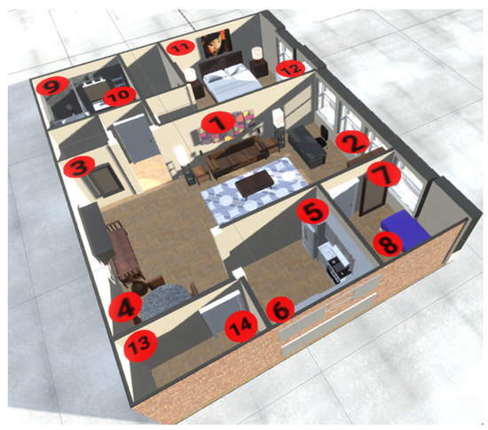 Diagram of sensor distribution by rooms in an average house for experimentation.