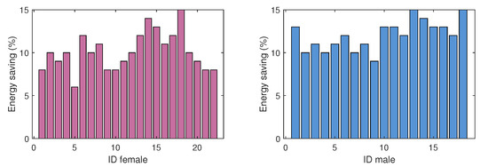Energy saving (%) with algorithm in male- and female-occupied houses.