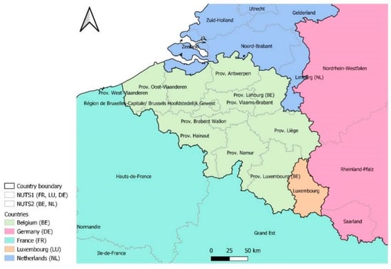 18]. For Germany, NUTS consists of the states, with Nordrhein-Westfalen and Rheinland-Pfalz sharing a border with Belgium. Luxemburg is a NUTS area on its own. The different regional levels considered are shown in