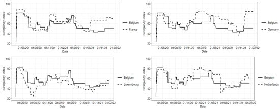 23]. For Belgium and its neighboring countries, the stringency index is shown in