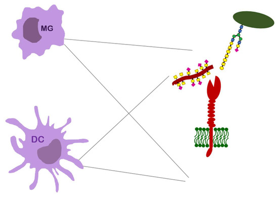 It is not entirely clear what the role of MGL is in establishing self-tolerance. Presented on the surface of macrophages and dendritic cells, it is highly expressed in tolerogenic subpopulations of these cells [55]. This lectin appears to play a protective role in prolonged, persistent inflammation and autoimmune diseases by preventing excessive tissue damage. MGL interactions participate in redirecting the activity of DCs to reduce the activity of effector T-cells and even induce their apoptosis [55]. The lectin may be also involved in the retention of immature DCs: the blockage of MGL with specific antibodies increased the migration of DC to the lymph nodes, where they induced an effector response. Cancer cells appear to target MGL interaction by displaying an increased number of truncated O-glycans, Tn and sTn, and use this mechanism to increase their own survival.
