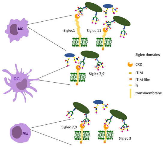- Crocker, P.R.; Paulson, J.C.; Varki, A. Siglecs and their roles in the immune system. Nat. Rev. Immunol. 2007, 7, 255–266. [Google Scholar] [CrossRef] [PubMed]