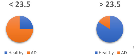 Assignment of subjects: Healthy and AD. 4 Number of subjects. According to diagnosis and cut-off point.
