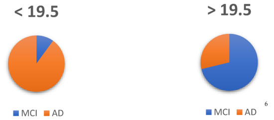 Assignment of subjects: MCI and AD. 6 Number of subjects. According to diagnosis and cut-off point.