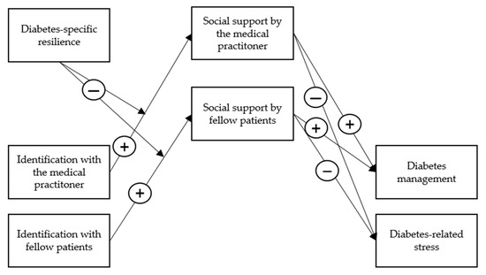 Previous studies showed that social support provided by family and friends, fellow patients, or medical staff improves diabetes management and reduces diabetes-related stress [11,12,13,14]. However, up to this point, it is unclear whether social support indeed explains the social cure phenomenon in patients with diabetes mellitus (i.e., that there is an indirect relationship between social identification and diabetes management and diabetes-related stress via social support).