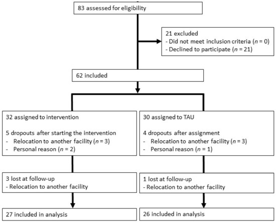 The study had a quasi-experimental design with an intervention group and a control group receiving treatment as usual. In the original study protocol, we planned to randomly allocate participants to the conditions. However, randomisation was not possible due to organisational difficulties at the facilities.